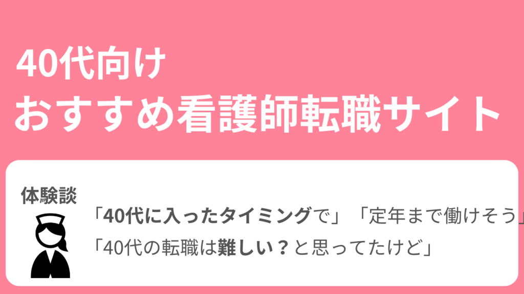 周りを見る感じ40代からの働き方は、病院以外だとクリニック・訪問看護・介護施設・健診センターがいますね。